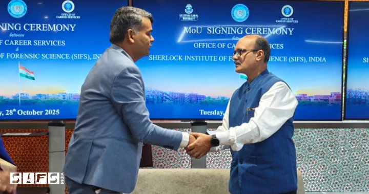 A new academic collaboration was established through an MoU between Sherlock Institute of Forensic Science (SIFS) India and O.P. Jindal Global University, Sonipat. This partnership focuses on connecting classroom learning with practical forensic applications to benefit students and professionals. [28.10.2025]