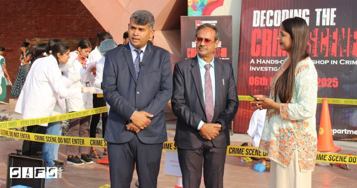 The Crime Scene Investigation Workshop by SIFS India at Chandigarh University, Lucknow, turned forensic curiosity into hands-on discovery! Participants learned how tiny clues like a footprint, a fiber, or a misplaced object can crack big mysteries. The workshop was conducted by Dr. Ranjeet Singh and Dr. Vijay Rustagi, during which students gained real-world insights into evidence handling, observation, and investigative logic. Their expertise and passion made every moment a thrilling journey into the science behind solving crimes. [08.10.2025]